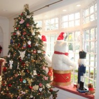 Inspired by a napkin from a cocktail party, Christensen asked his neighbor’s son, a student at Palo Alto High School, to make a Nutcracker decoration. Now the lone Nutcracker is joined by a ballerina and the seven-headed mouse king. The Nutcracker theme continues inside – Christensen says that he picks up nutcrackers whenever he sees them. Despite his enthusiasm for the tradition of Christmas Tree Lane, he says that he didn’t know about the tradition when he first moved to Fulton Street.