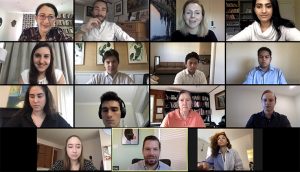East Bay Congressman and former Democratic Presidential candidate Eric Swalwell (D-Dublin) sits down for an interview Oct. 22 with Stanford student journalists for the Peninsula Press Oct. 22, 2020. (Noah Cortez / Peninsula Press)