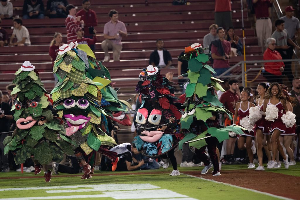 Stanford Trees, mascots of the Leland Stanford Junior University Marching Band, run onto the field before the Florida State vs. Stanford game.