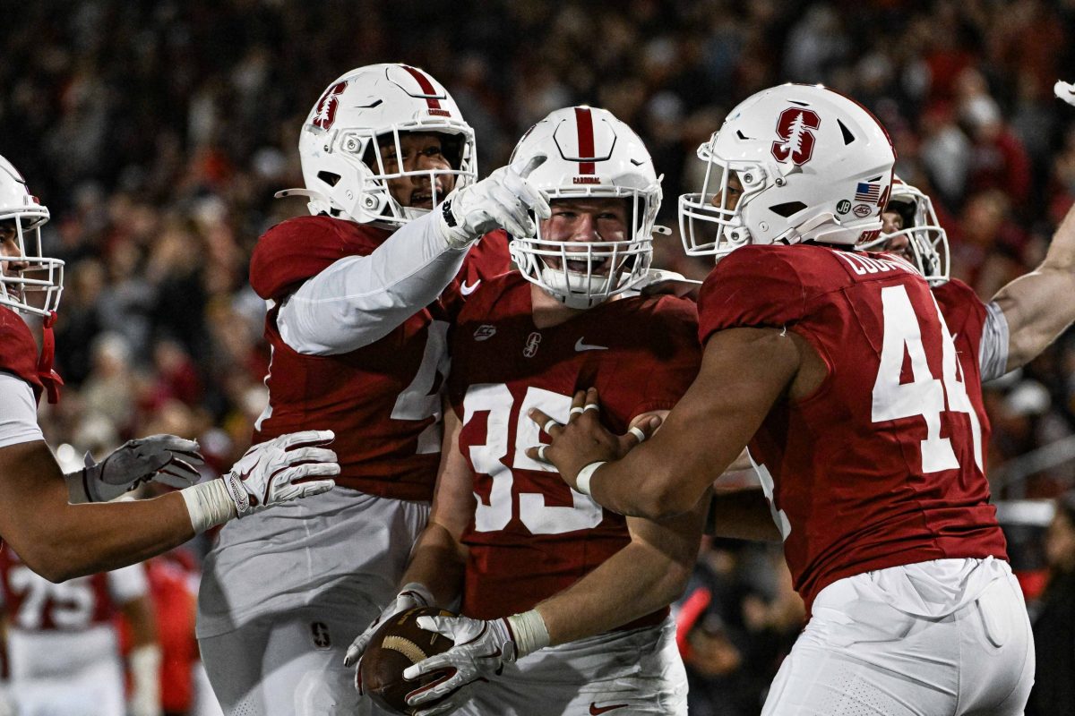 Members of the Stanford Cardinal Football celebrate after a touchdown during the 128th Big Game in Stanford, California on Nov 22, 2025. (Ziyu Julian Zhu/Peninsula Press)