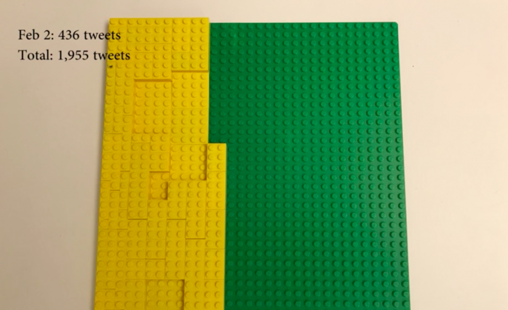 The total number of tweets with the hashtag in the month leading up to game day was 1,955. On Super Bowl Sunday, there were 30,715 tweets with the hashtag.